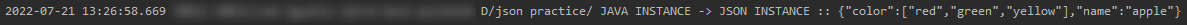Log.d("json practice/ JAVA INSTANCE -> JSON INSTANCE : ",jsonFromObject);