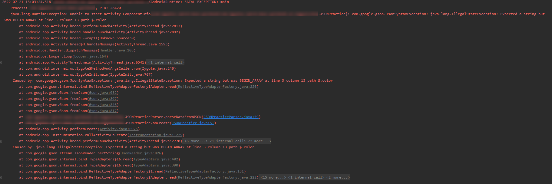 문제가 되는 것은 color필드인데, 기존의 jsonObject.getString("color")를 했던 것과 달리